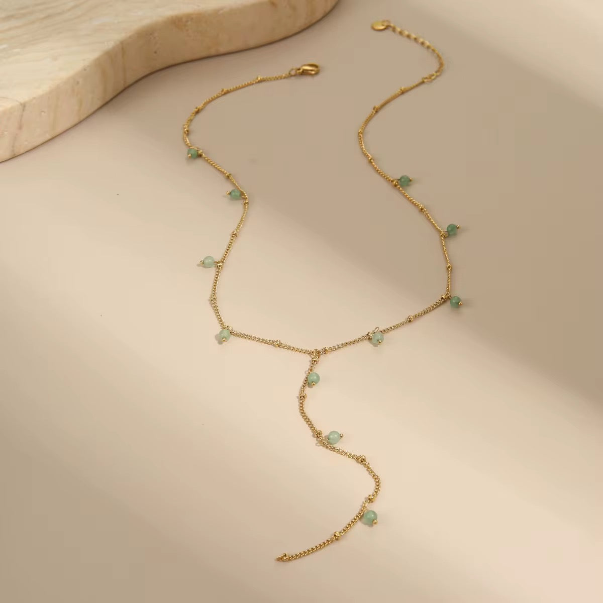 A layered necklace set featuring oval aventurine beads and a complementary stone-accented chain. Perfect for adding natural elegance and subtle color to any outfit.