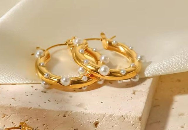 18K Gold Plated Stainless Steel Colored/Pearl Zircon Circle Hoop Earrings