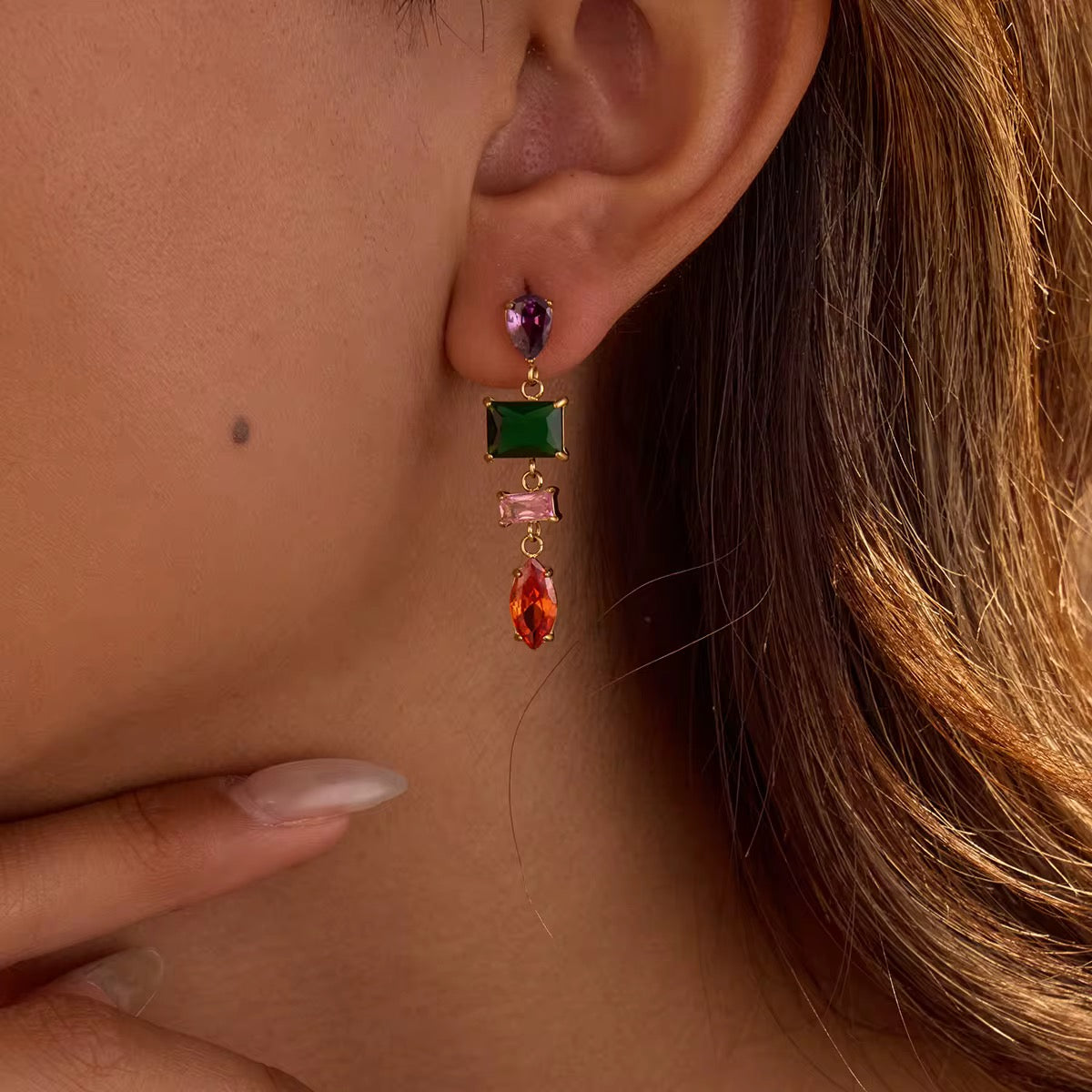 Sparkle with every move — Viora features vibrant zircon stones in a cascading drop design. Lightweight, playful, and full of color, it’s the perfect statement piece for any outfit.